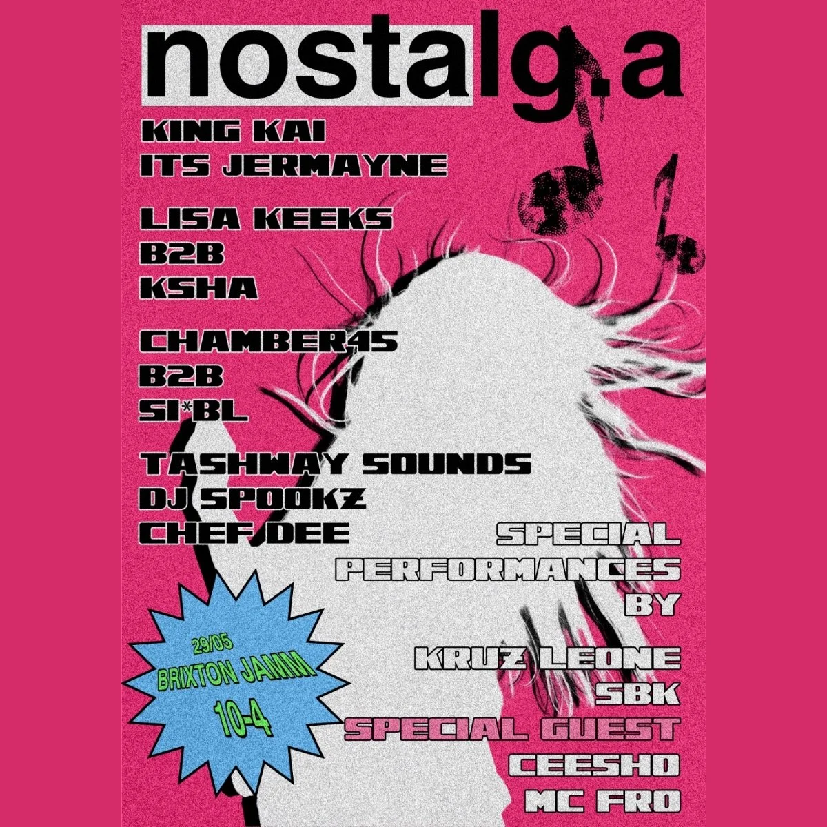 nostalg.a is a night dedicated to the sounds that shaped us, a journey through Jungle, UKG, Grime, UK Funky, 2010's House/Pop, Afroswing/Drill and UK Underground. Expect a carefully curated blend of UK sounds that hit both the heart and the dancefloor.